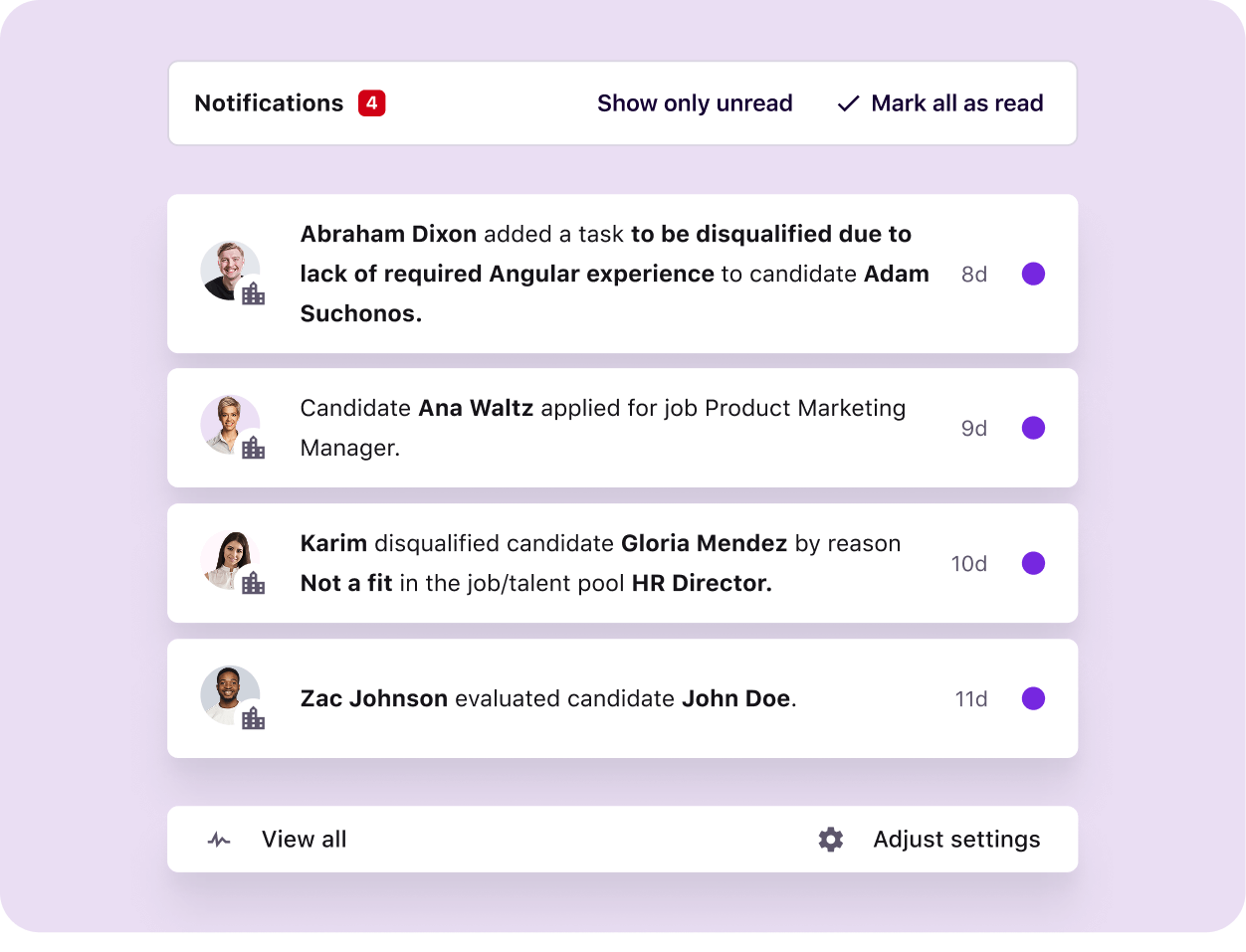 No more scattered notes or endless email chains. Our centralized ATS brings recruiters, hiring managers, and decision-makers together in one place, so you can streamline hiring, & make the right decisions, faster.